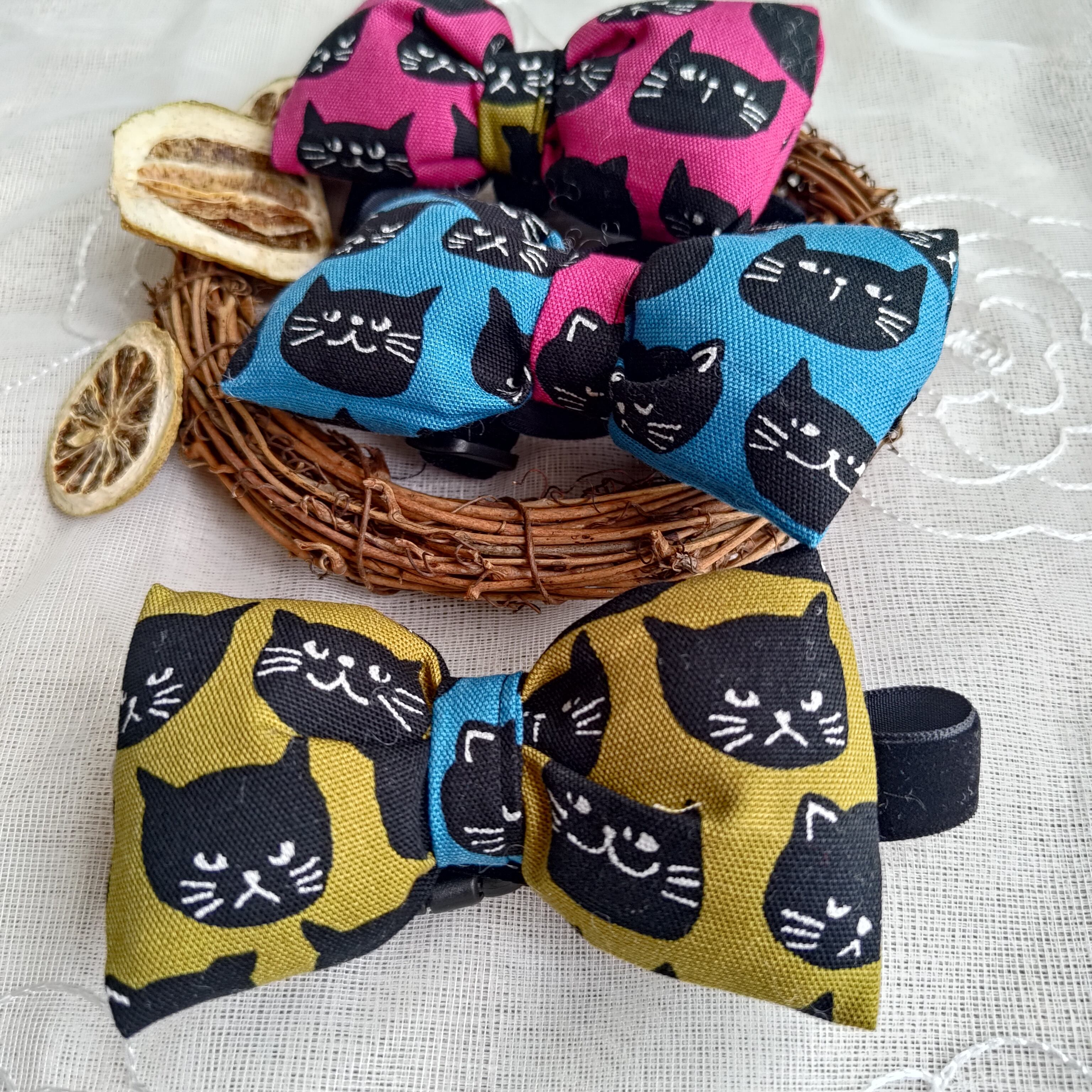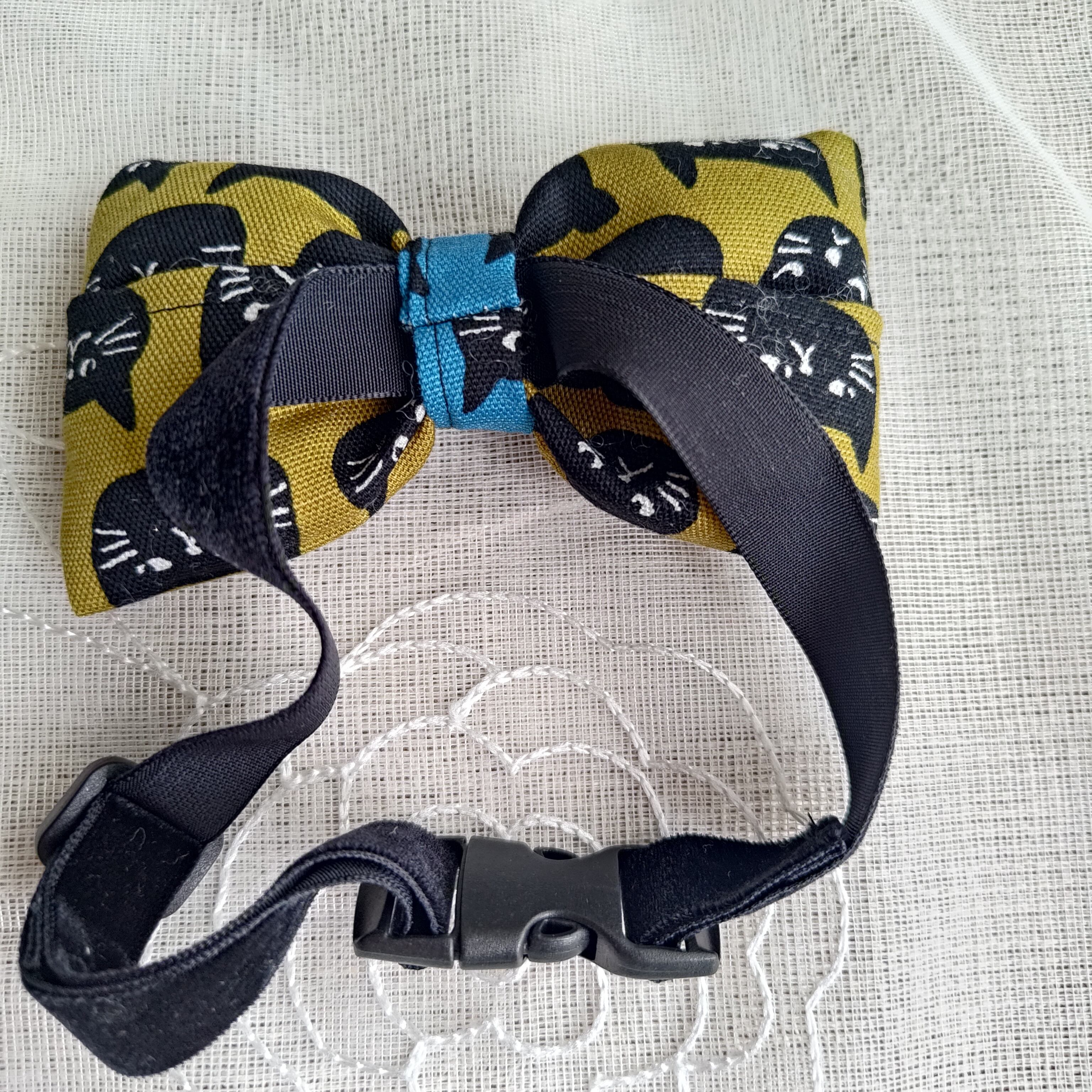 中型犬用蝶ネクタイ 黒猫柄 イエロー