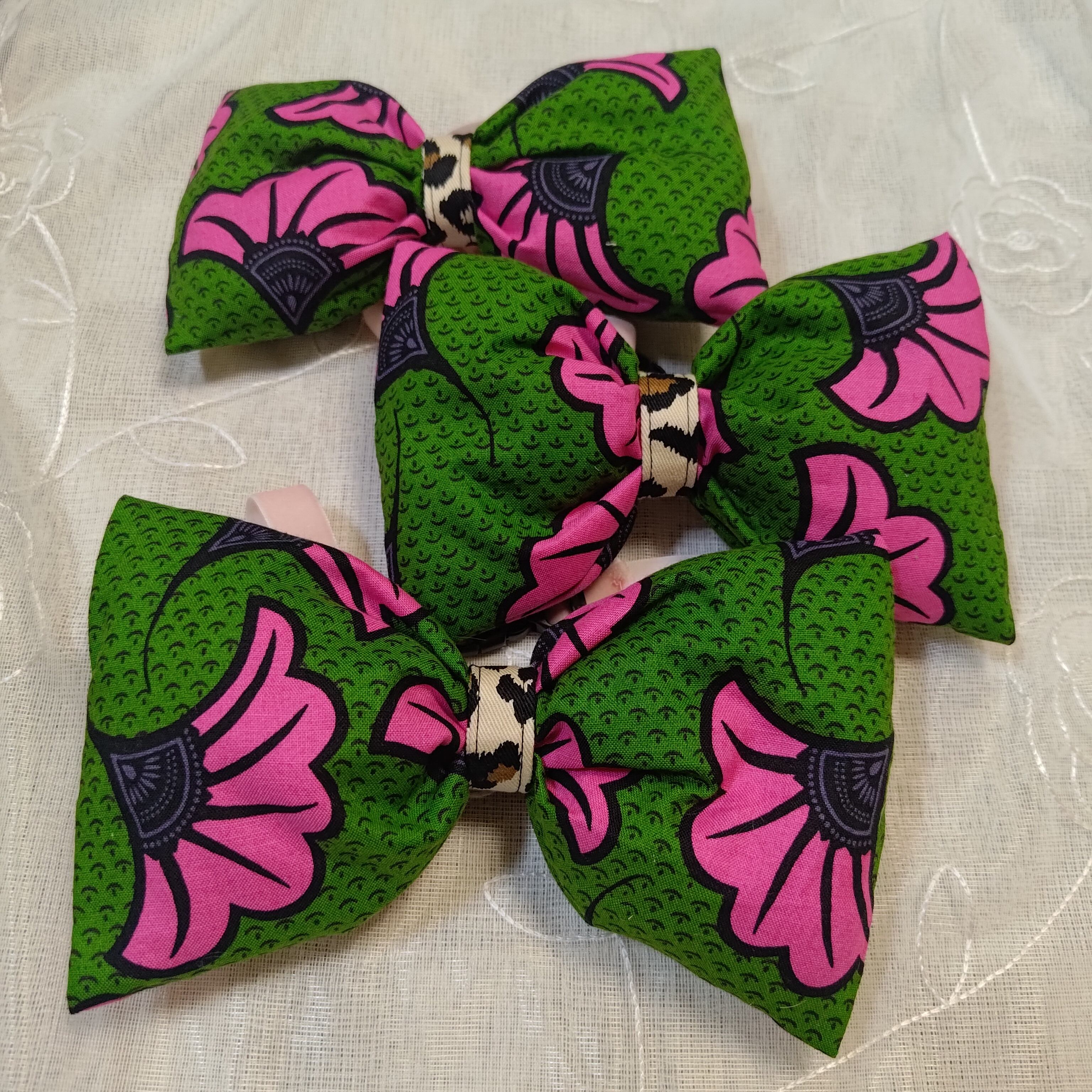 大型犬用蝶ネクタイ アフリカ柄 ピンクグリーン