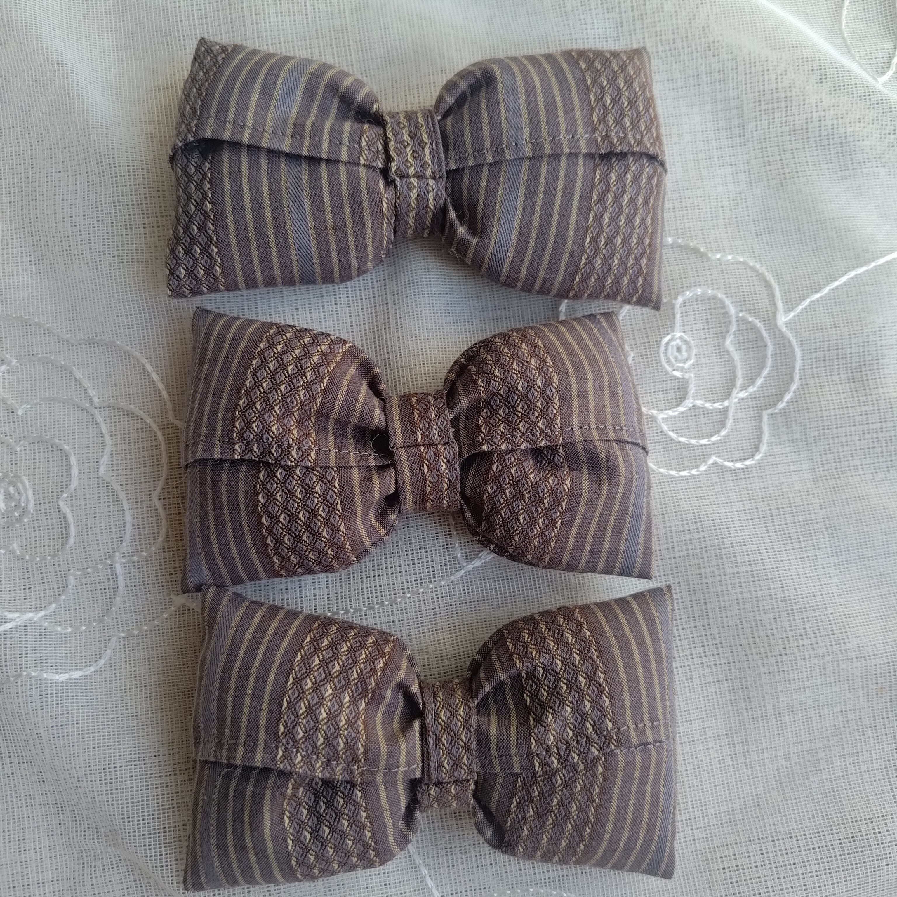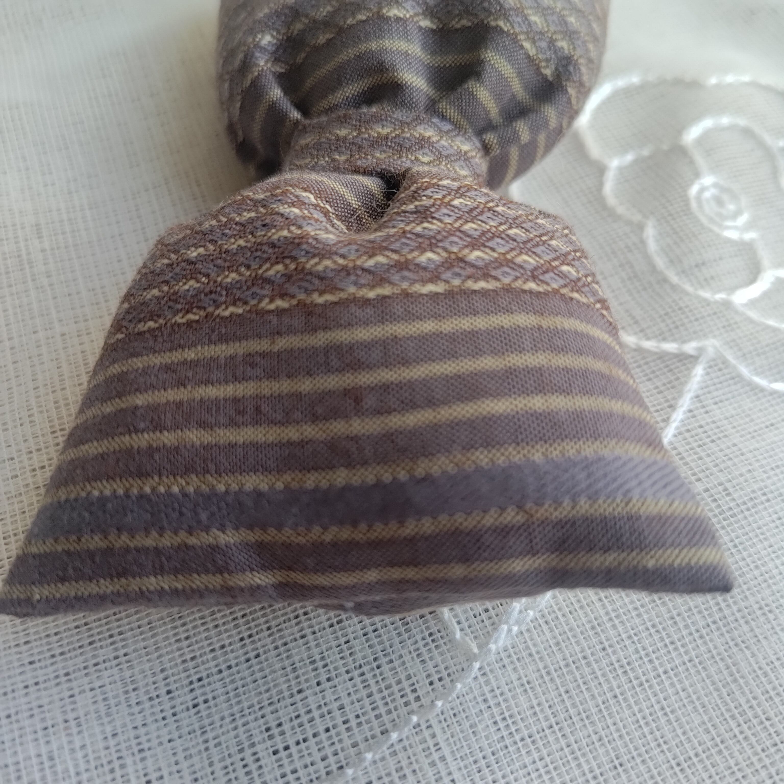 こちらの蝶ネクタイはシックなブラウンとよく見ると水色の組み込まれた大人柄。