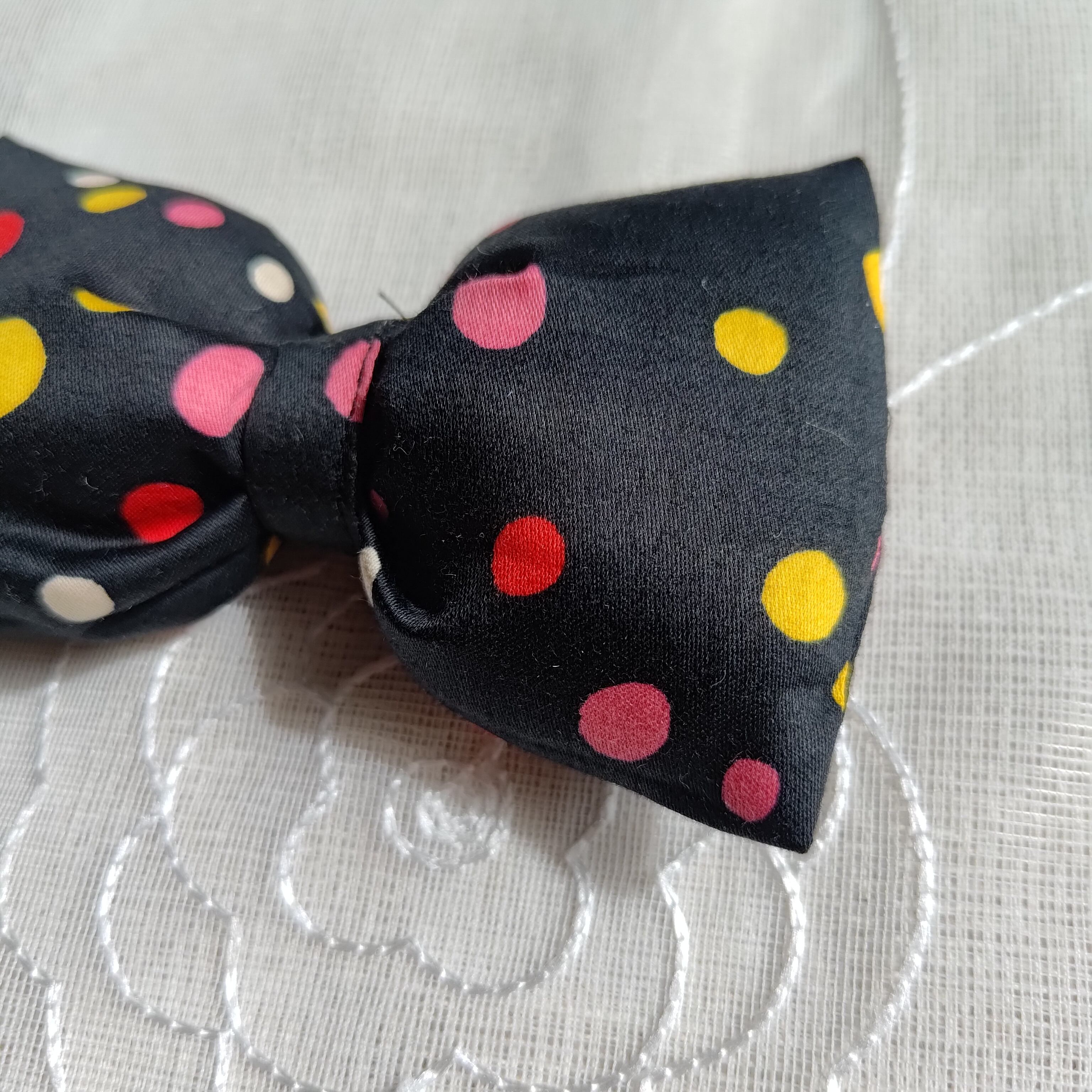 こちらの蝶ネクタイはブラックにカラフルドット柄。