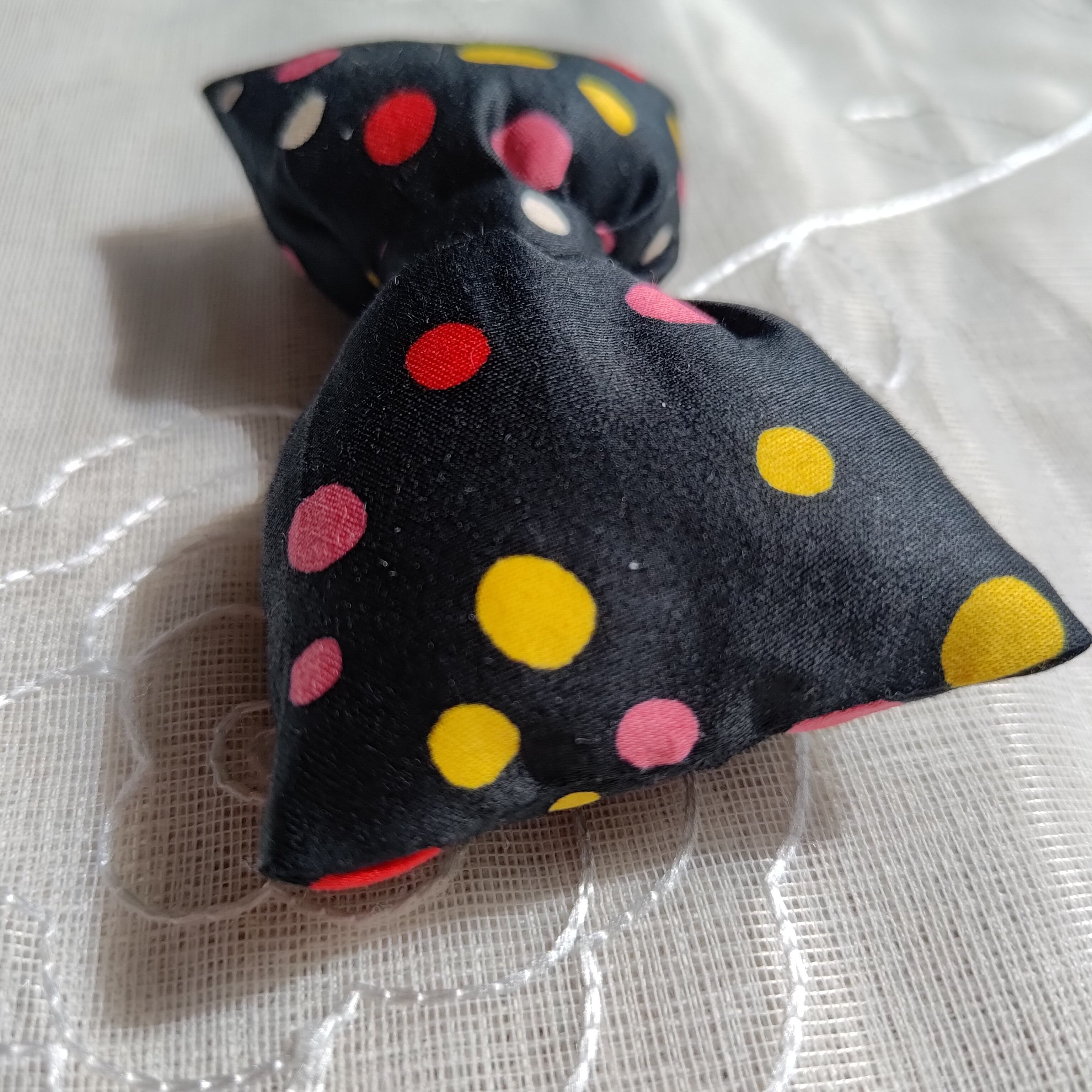 こちらの蝶ネクタイはブラックにカラフルドット柄。