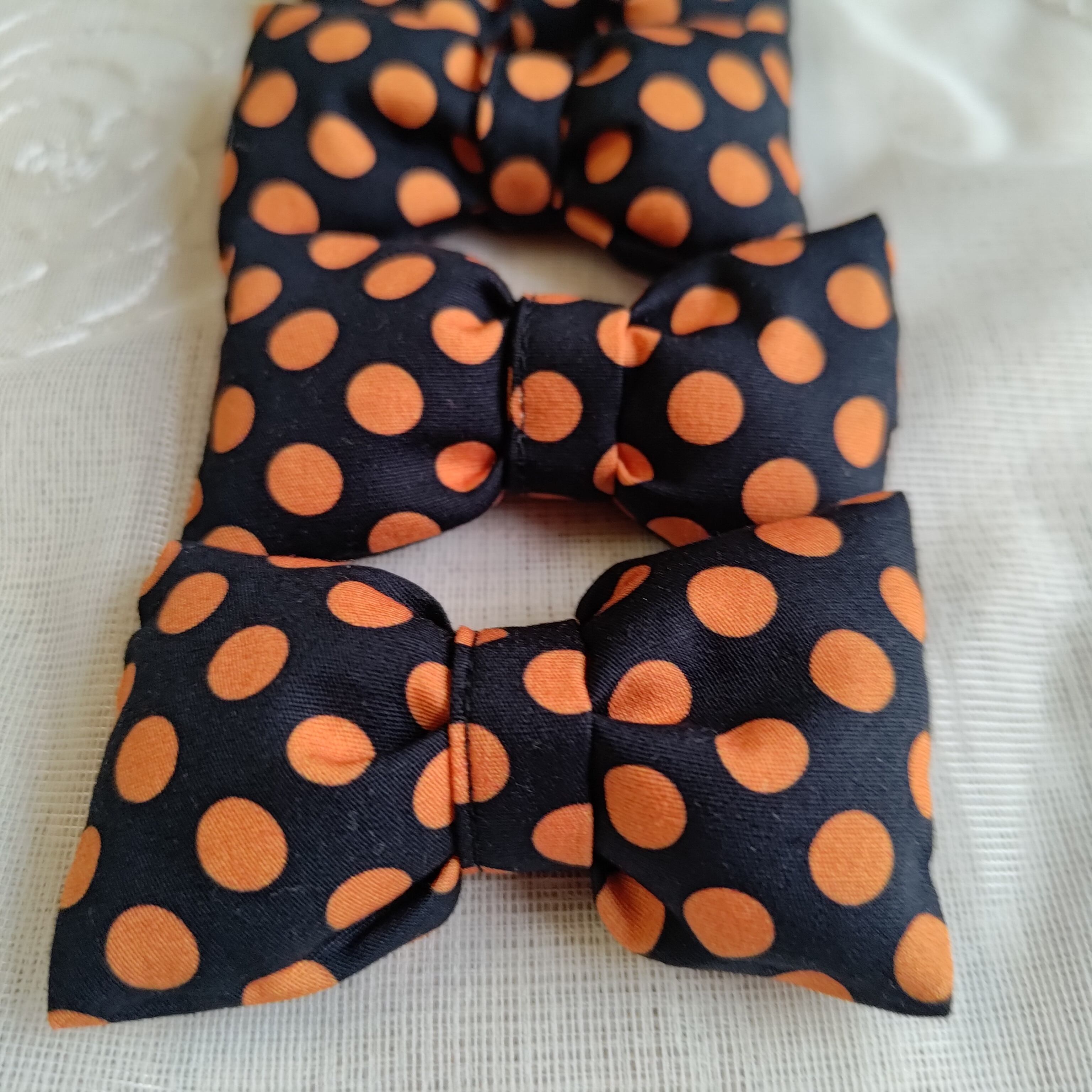 超小型犬用蝶ネクタイ 黒地オレンジドット柄