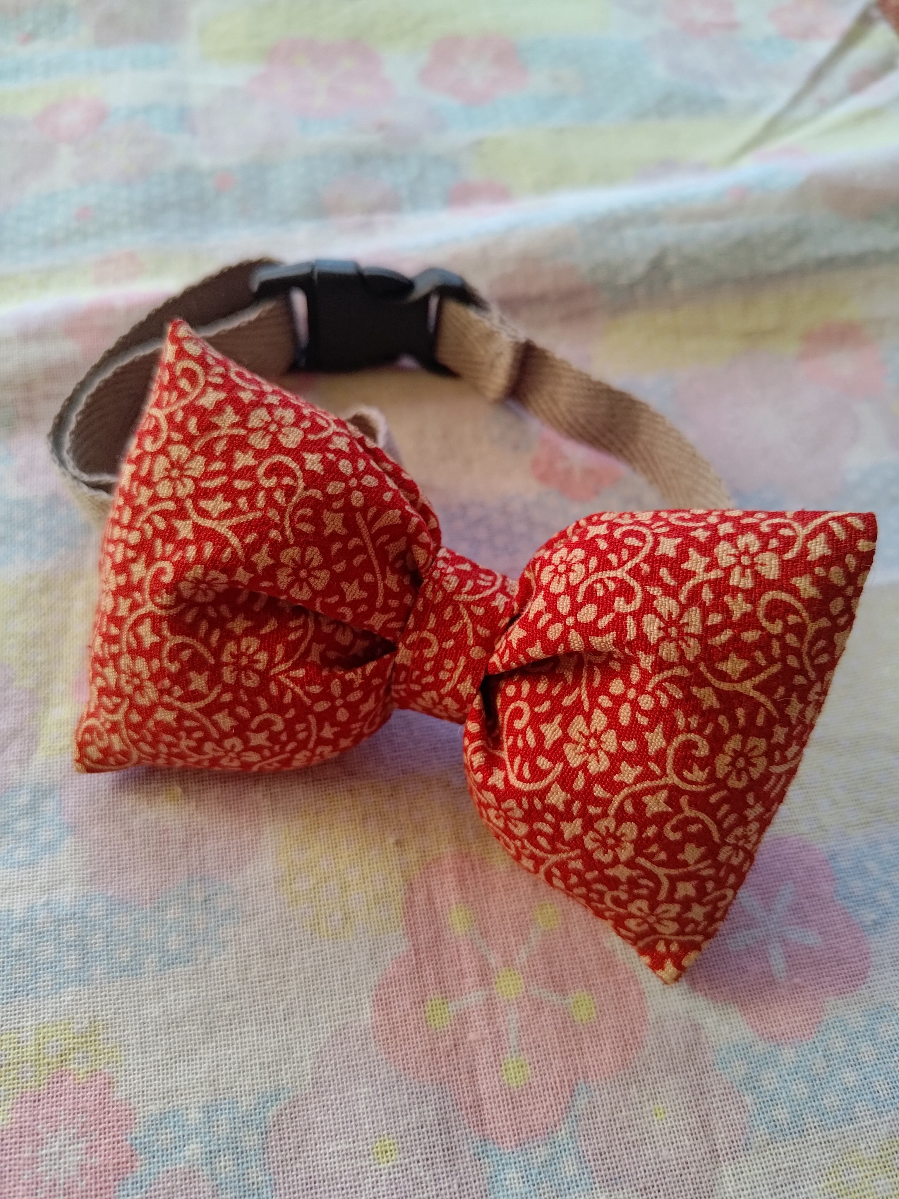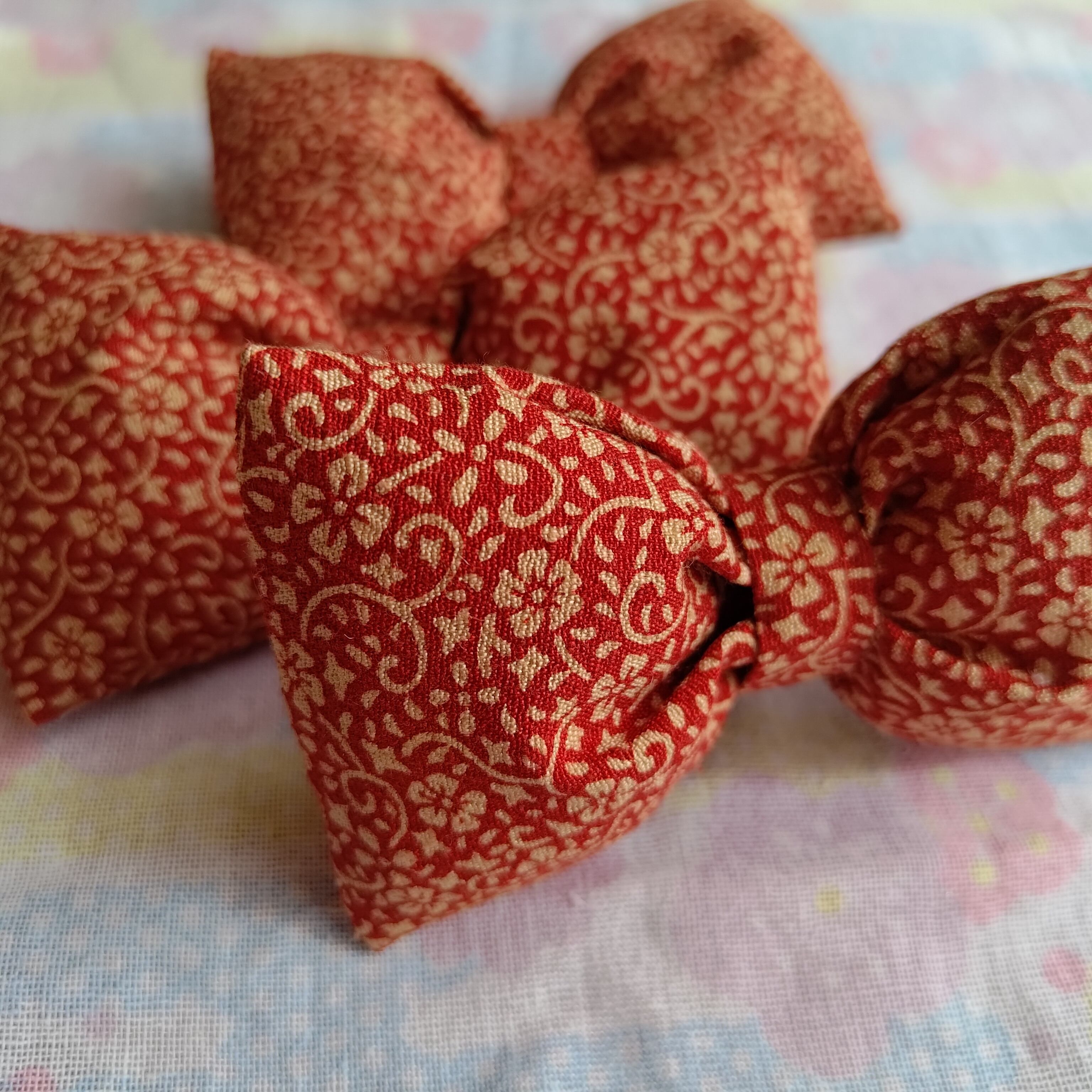 中型犬用蝶ネクタイ レッド和柄花唐草
