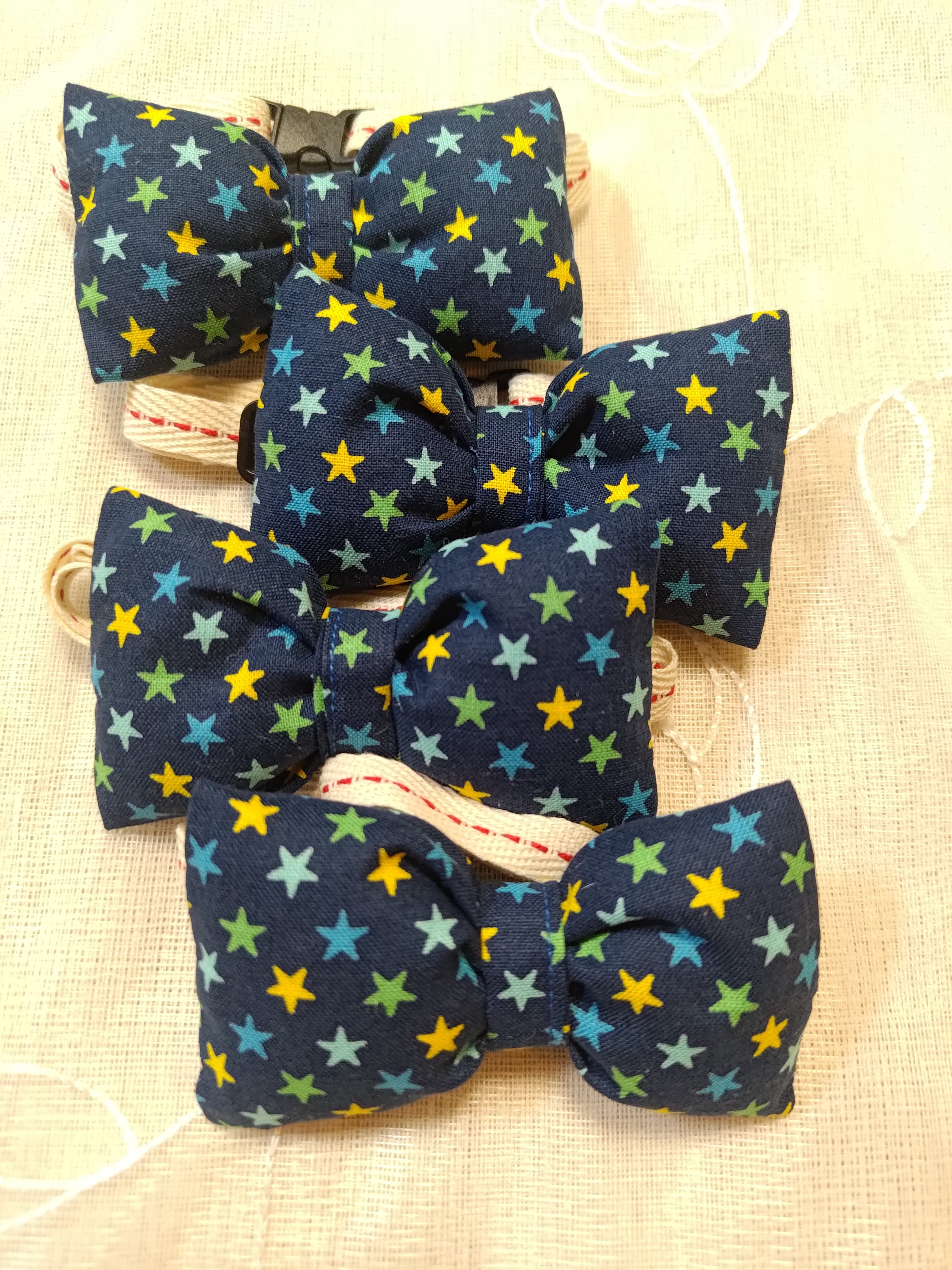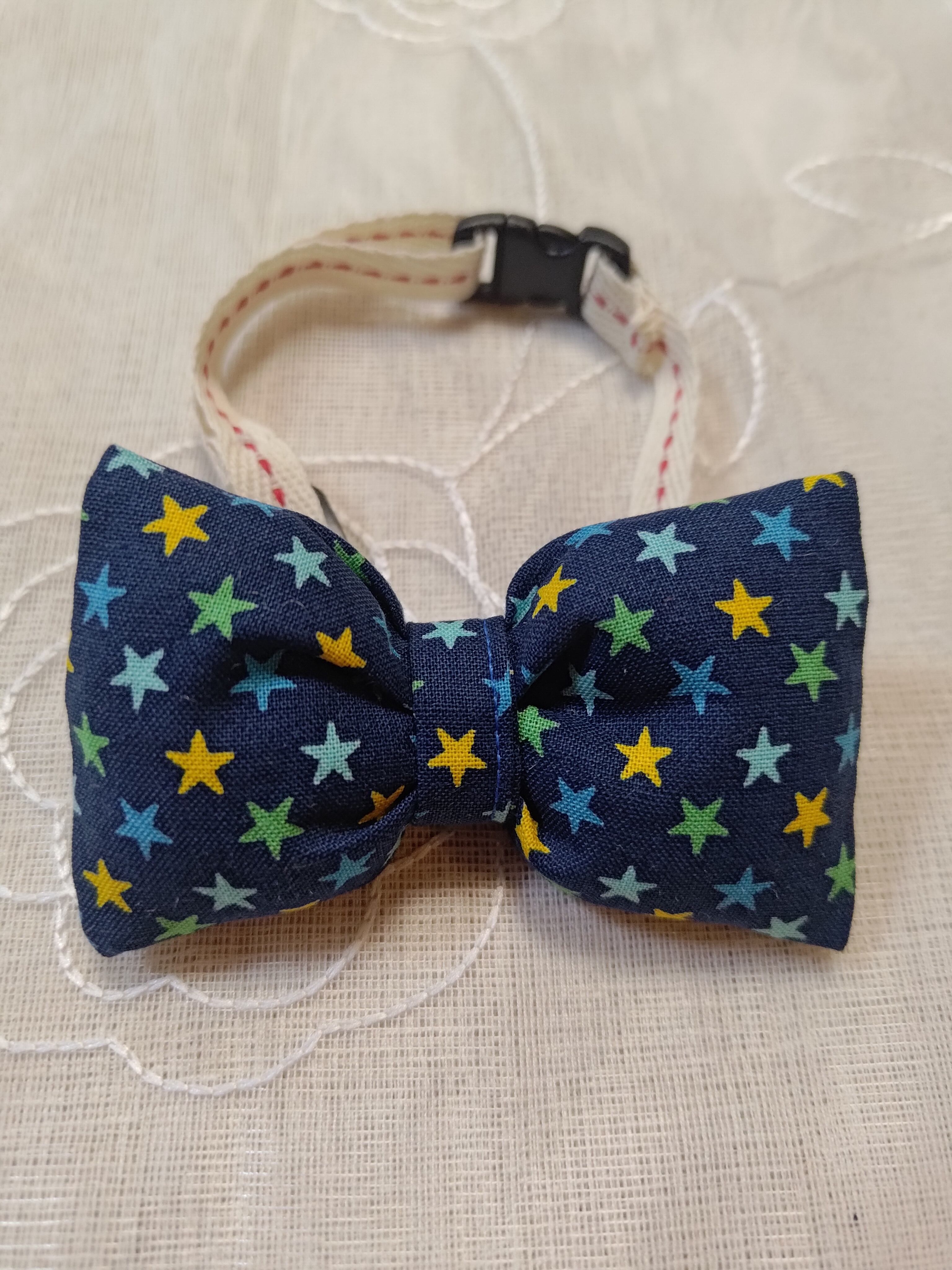 小型犬用蝶ネクタイ ブルー✕カラフルスター