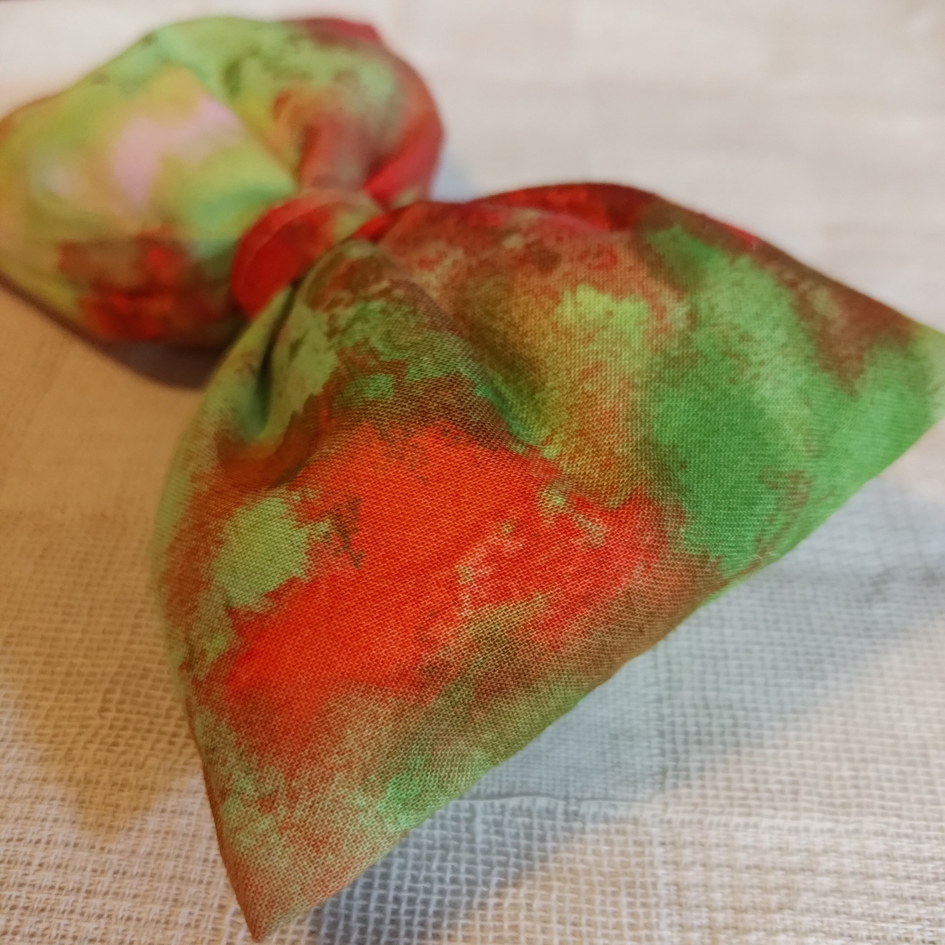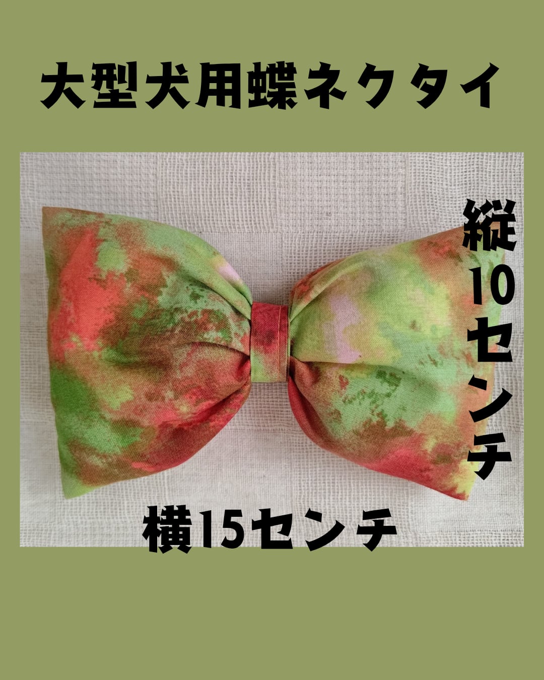 大型犬用蝶ネクタイ まだら染め赤✕緑柄
