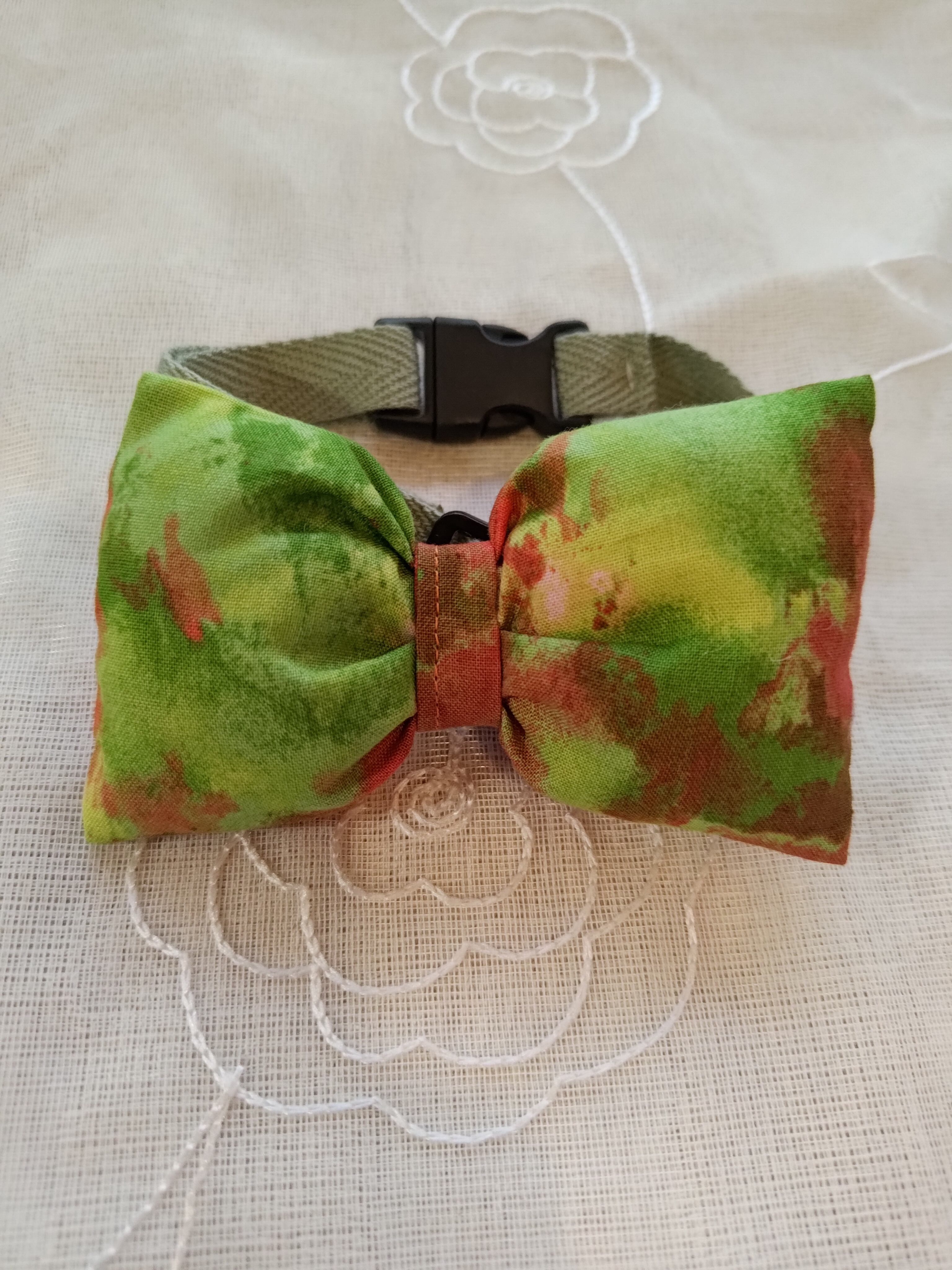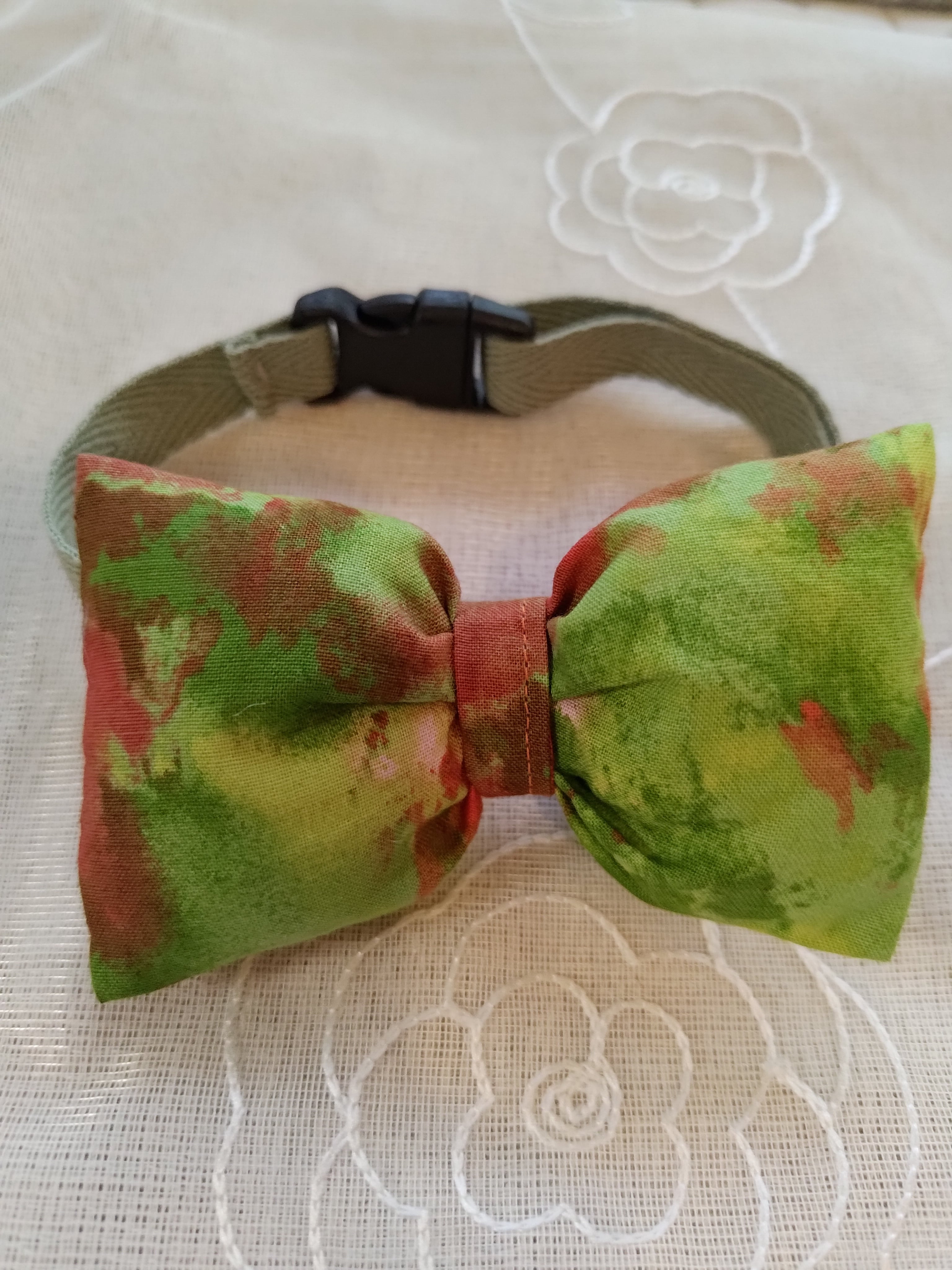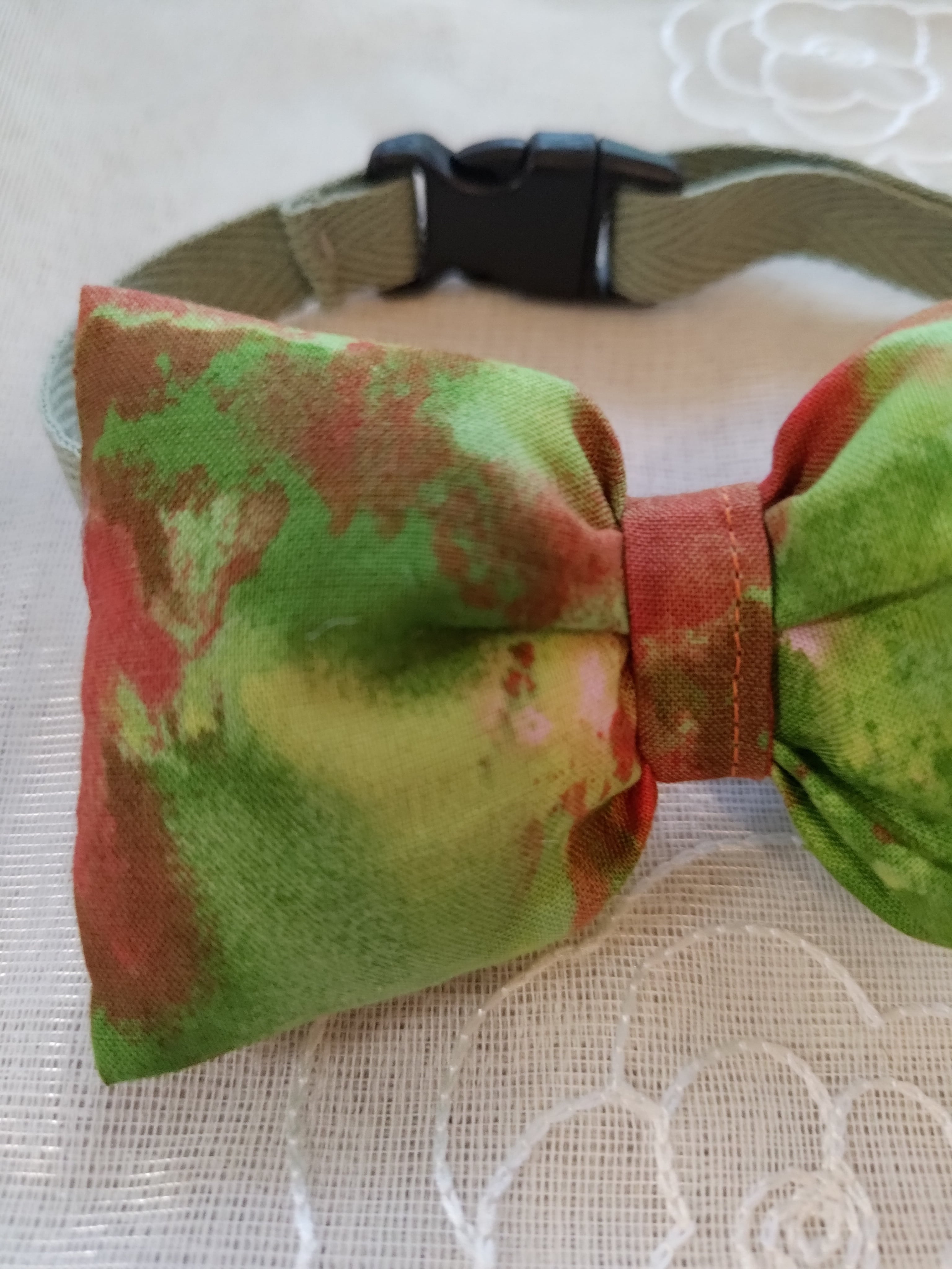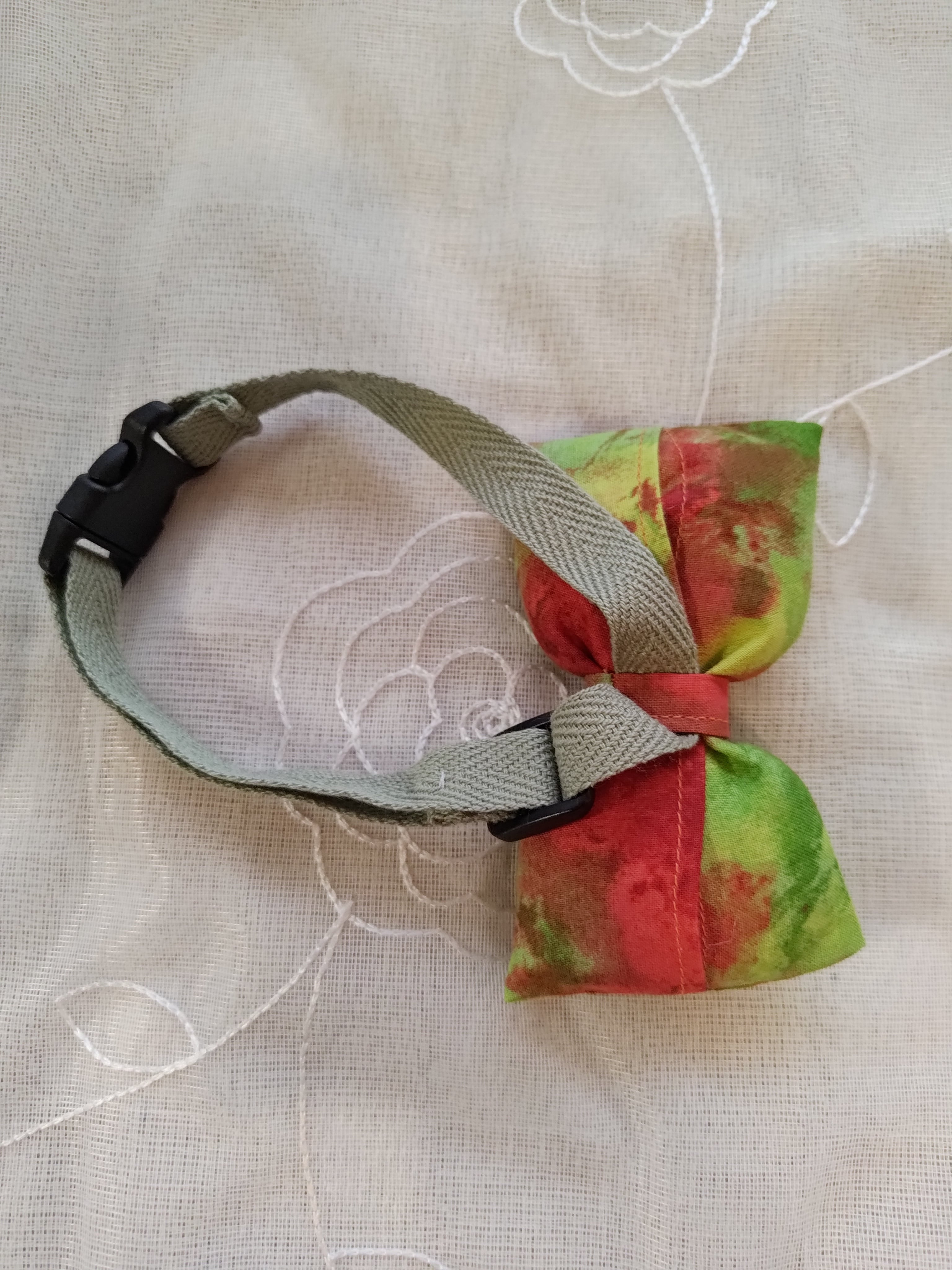 中型犬用蝶ネクタイ まだら染め赤✕緑②