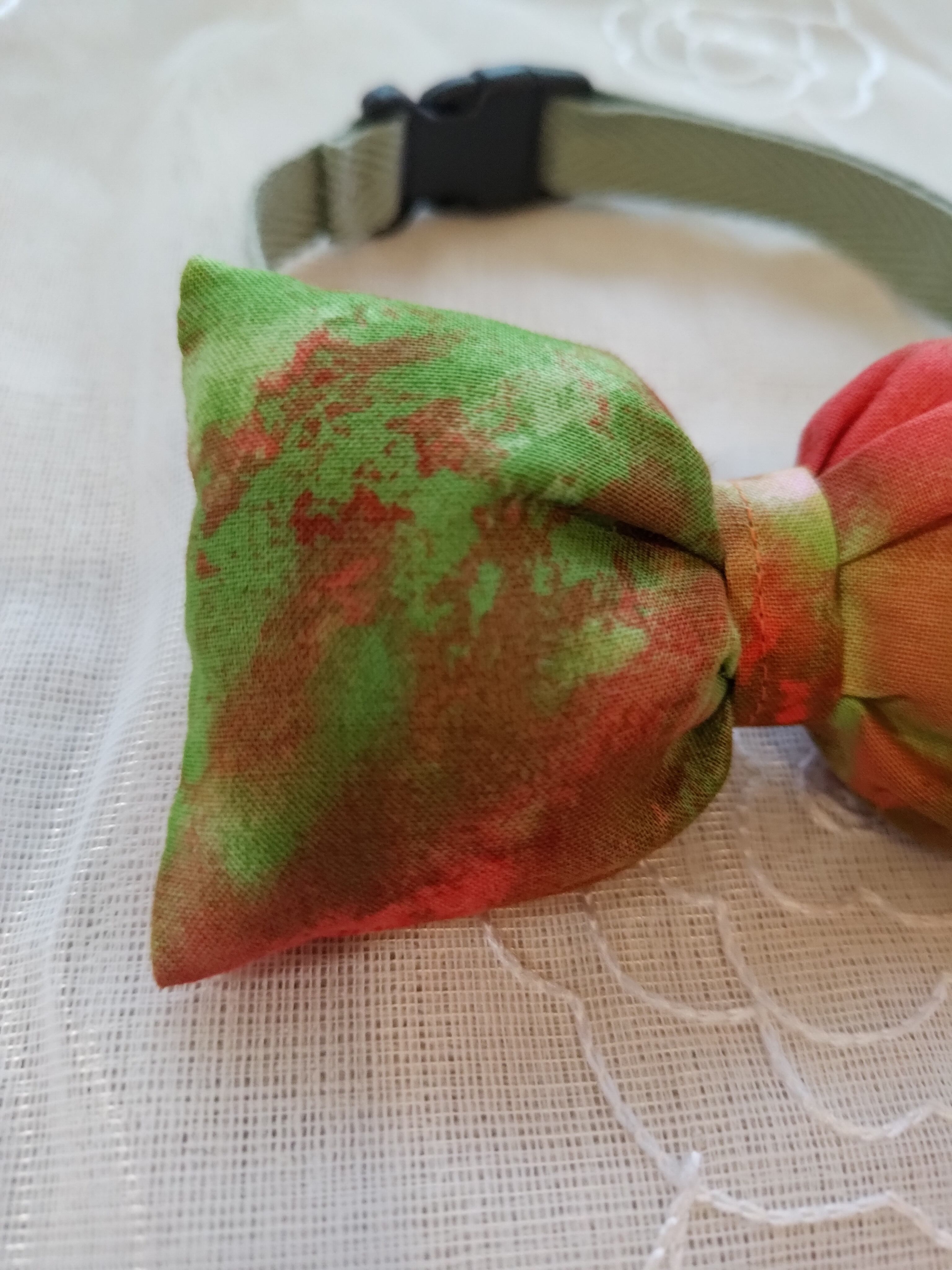 中型犬用蝶ネクタイ まだら染め赤✕緑③