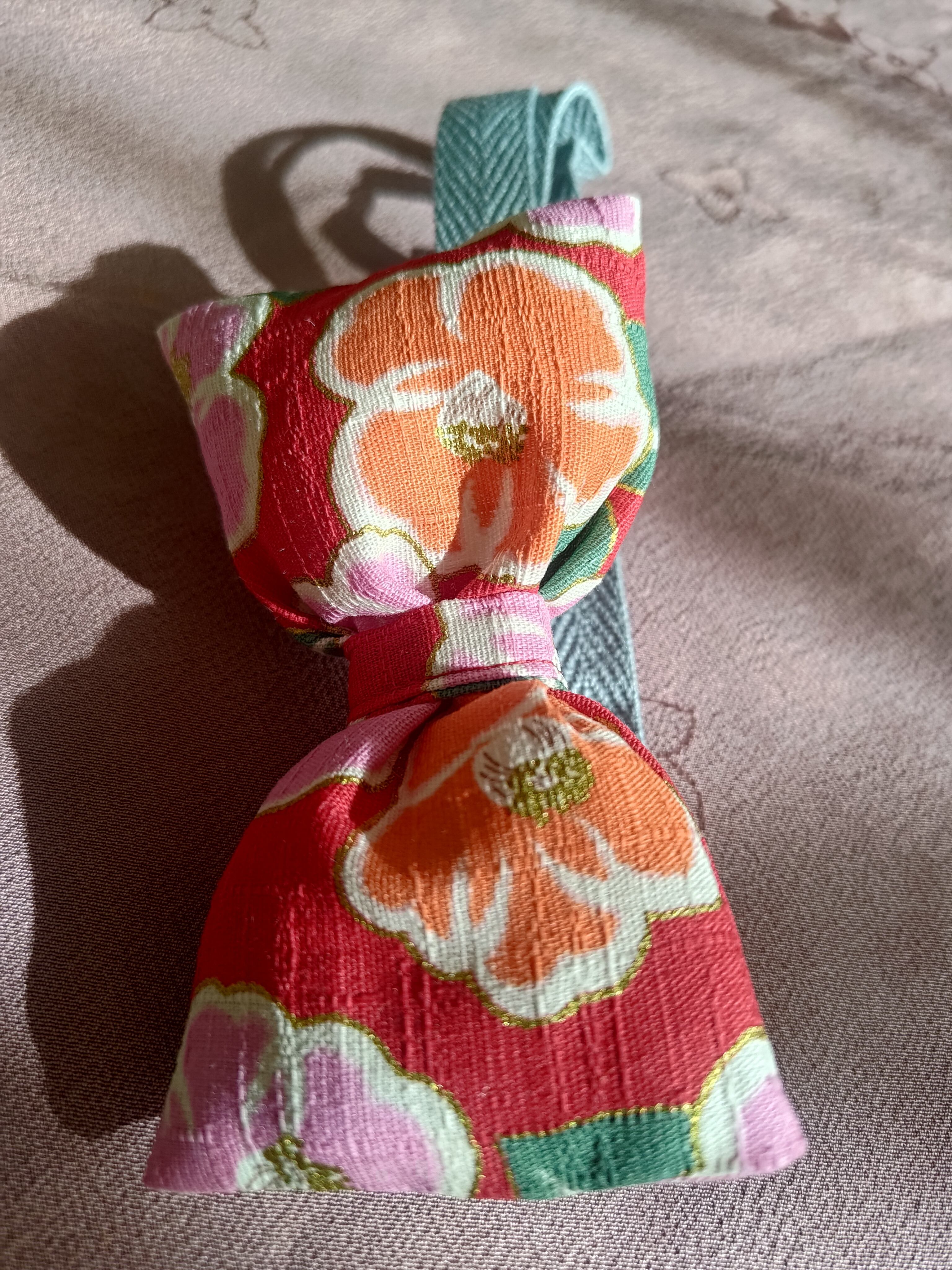中型犬用蝶ネクタイ 赤ツバキ金彩和柄②