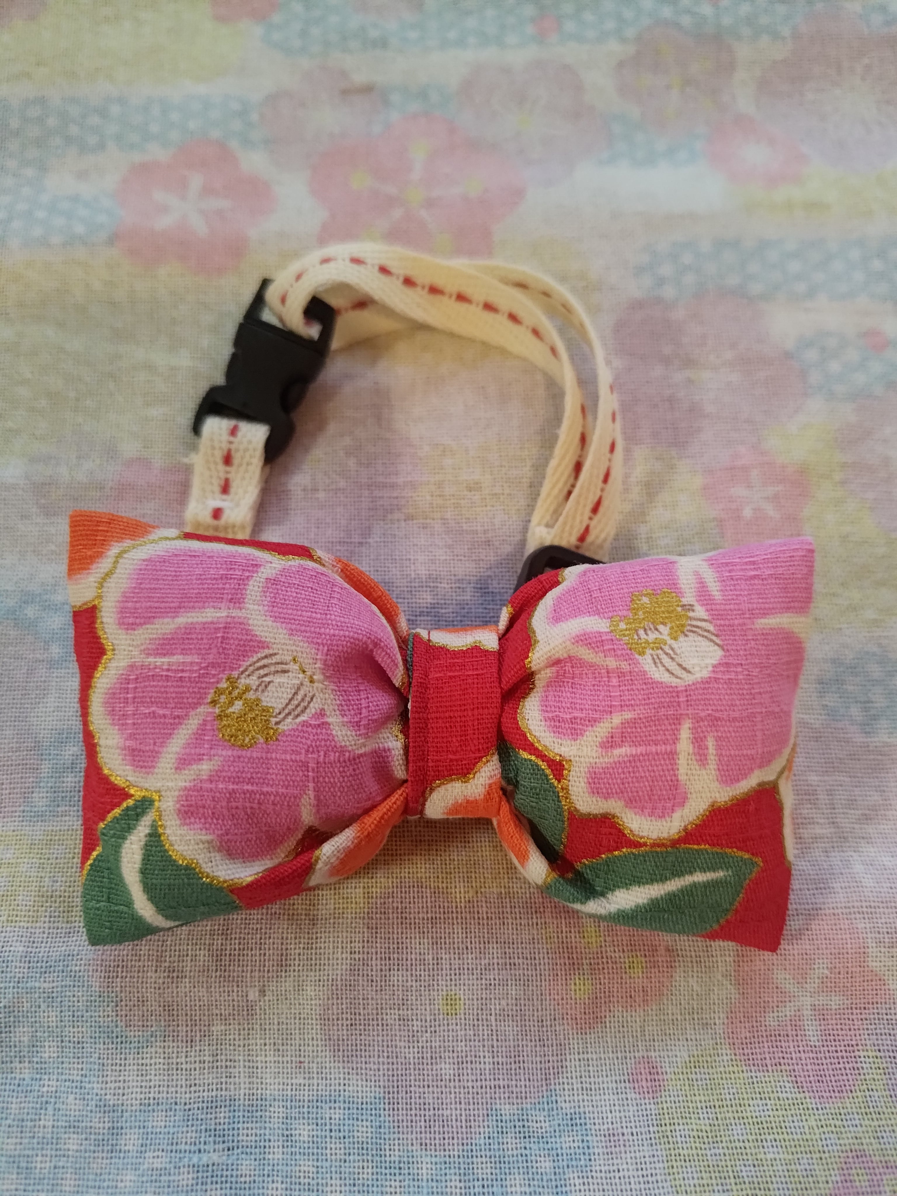 小型犬用蝶ネクタイ ツバキ金彩和柄①