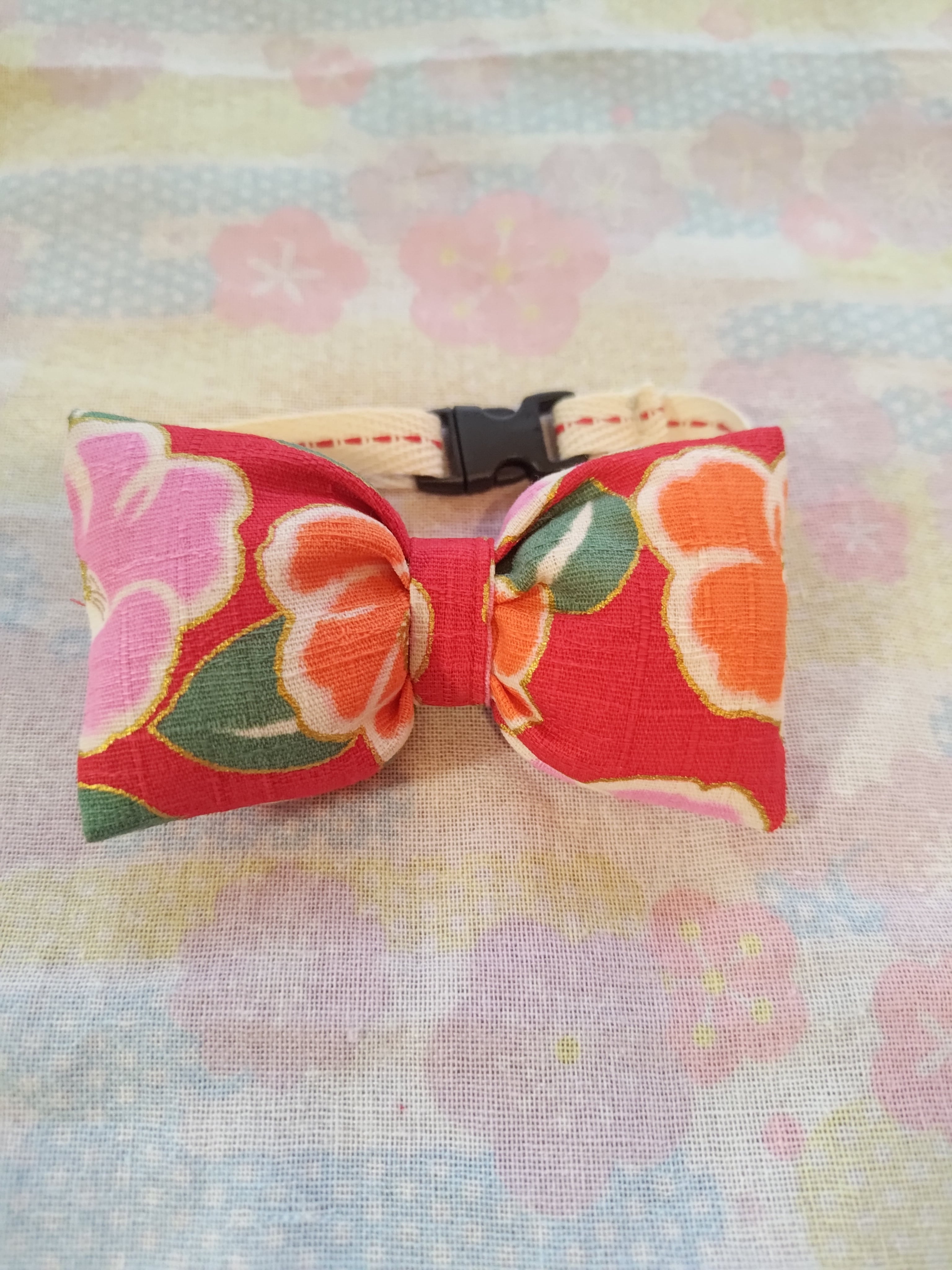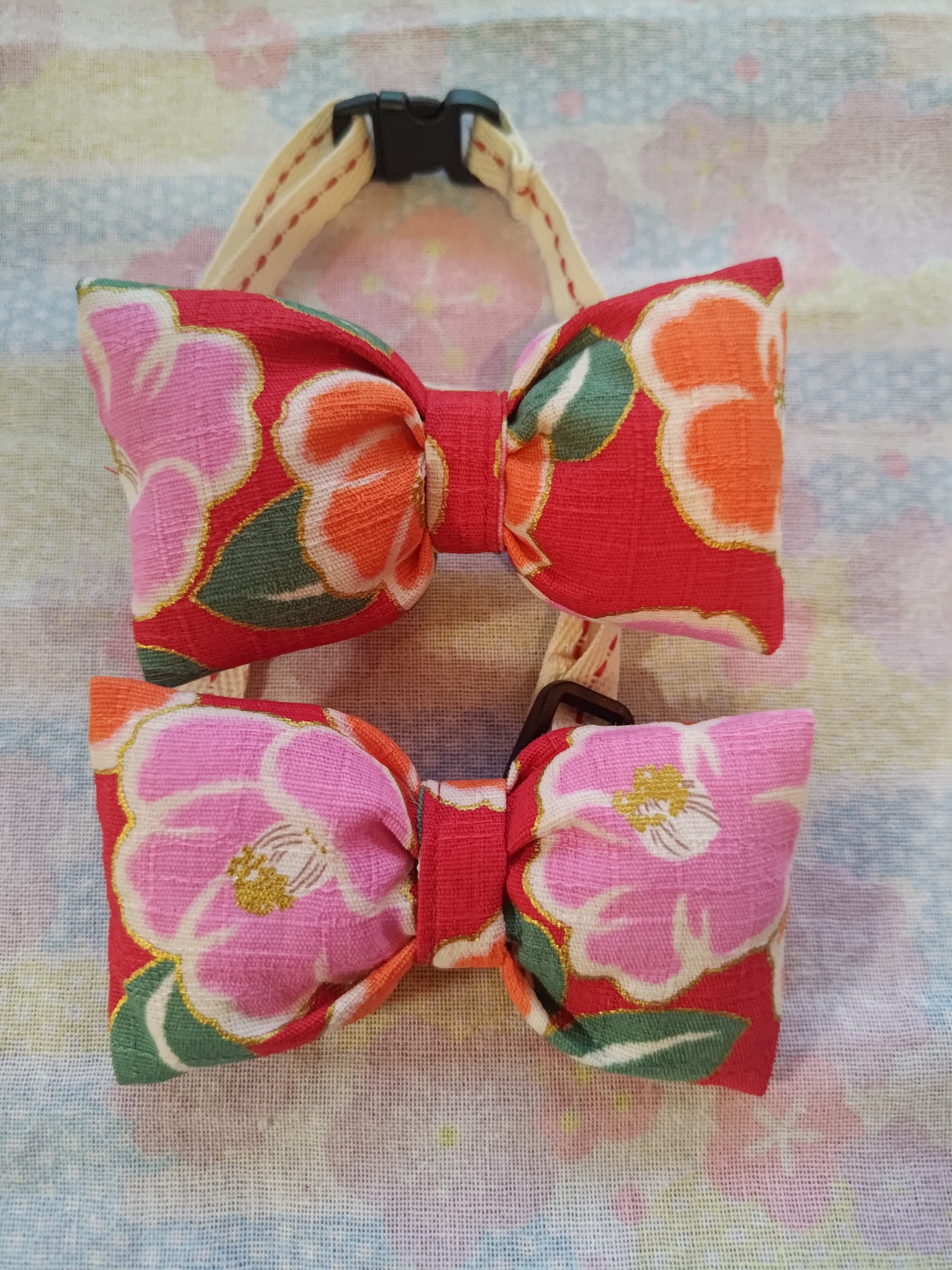 小型犬用蝶ネクタイ ツバキ金彩和柄②